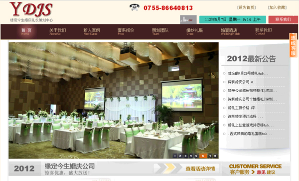 深圳市緣定今生婚慶禮儀策劃有限公司是一家具有時尚色彩的專業(yè)婚禮統(tǒng)籌機構(gòu)。擁有雄厚的婚禮企劃能力、優(yōu)良的服務體系、資深的策劃專業(yè)人士和獨特創(chuàng)新的婚禮創(chuàng)意制作。形成了自己獨特的策劃風格,具有承辦各類中、西式和個性化的流行時尚婚禮的豐富經(jīng)驗,可以向新人提供全方位、個性化的專業(yè)服務。及先進的管理模式使我們在同行業(yè)的競爭中脫穎而出,獨樹一幟。