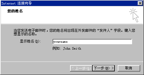 4.首先輸入您的顯示姓名,此姓名將出現(xiàn)在您所發(fā)送郵件的"寄件人"一欄;